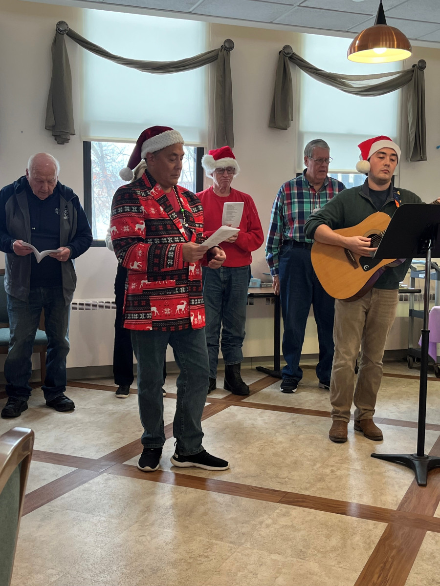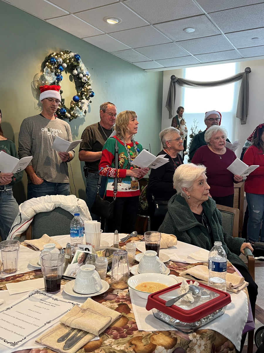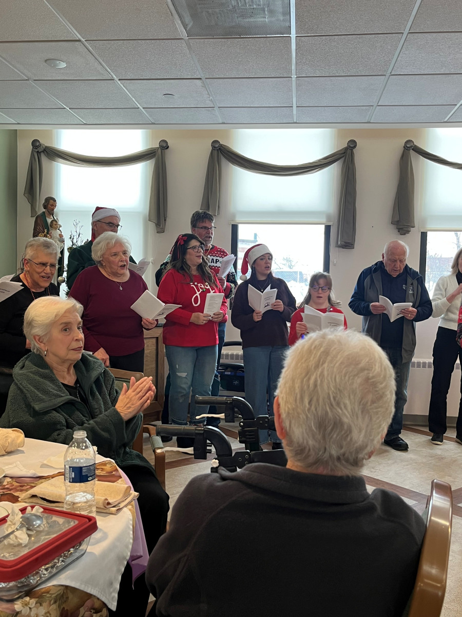 The holiday season is a special time here, and this year it was made even brighter by a visit from a group of cheerful carolers. Their arrival brought smiles and excitement as residents gathered in the dining room, ready to enjoy the timeless tradition of holiday music.