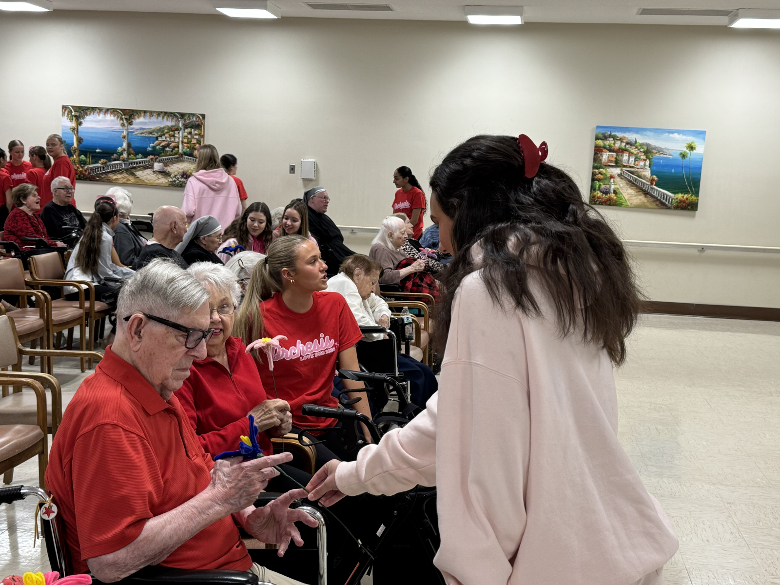 The celebration filled our Home with energy from the moment the students arrived dressed in festive pinks and reds for Valentine’s Day. The Orchesis dancers opened the program with beautifully choreographed pieces, followed by spirited performances from the cheerleaders that had everyone smiling and clapping. The orchestra ensemble followed with a beautiful selection of classic love songs, creating a warm and nostalgic atmosphere.