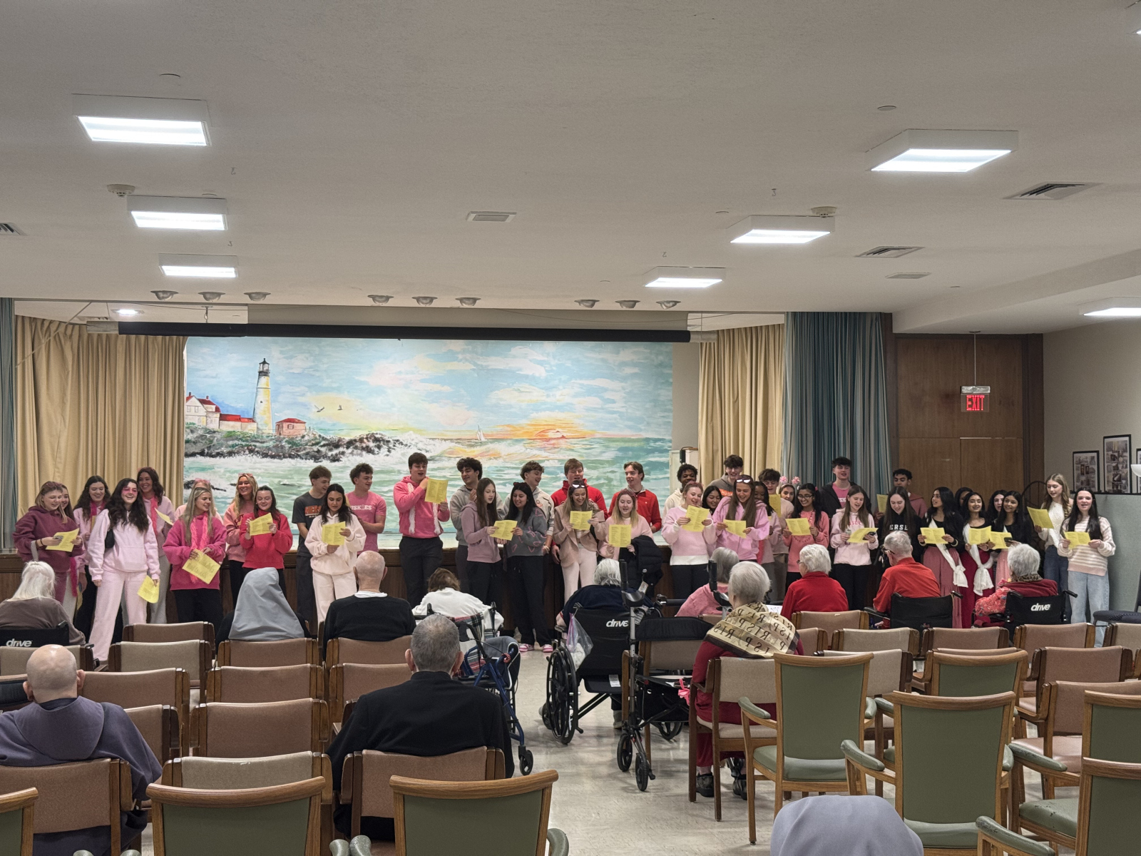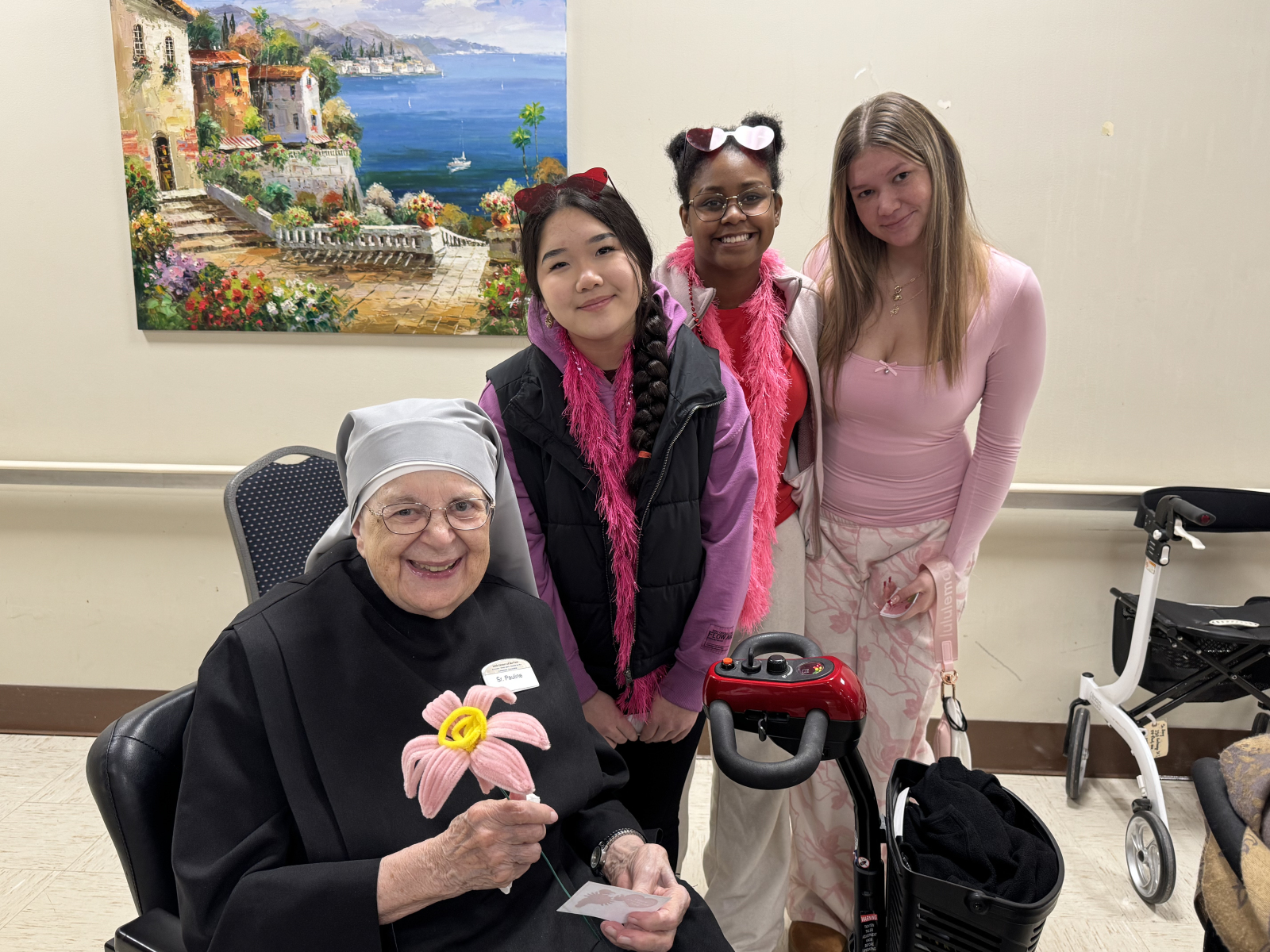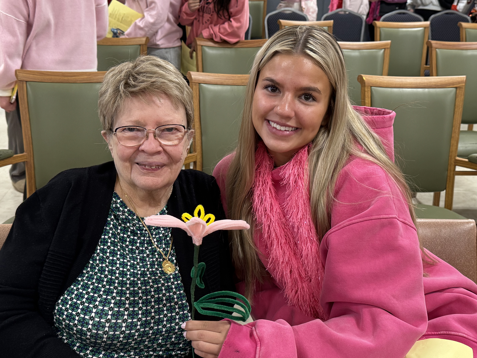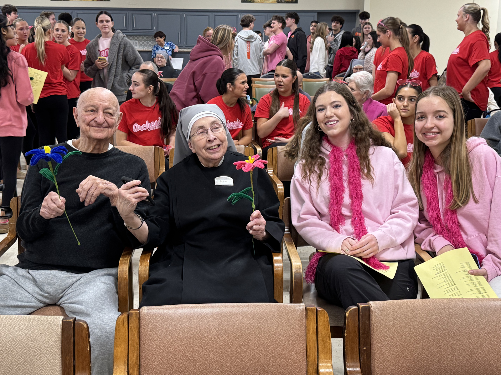 Before the show, students spent time chatting with residents, exchanging stories and laughter. They handed out handmade flowers and made sure each resident received a personal Valentine’s Day wish. These small gestures created moments of connection that means so much.